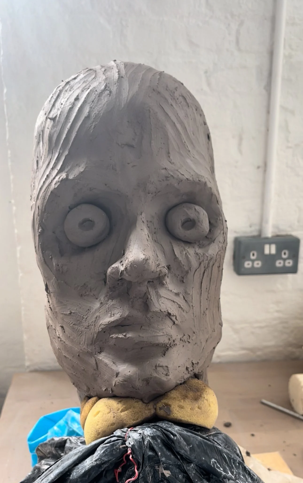 From there, I started layering clay, shaping the abstract into the suggestion of a head. At first, it was all structure — skeletal, raw, almost eerie. A formless silhouette slowly found its foundation.